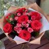 Благодаря сочетанию кустовых и классических красных Роз, букет выглядит с утонченностью, и нежно-алой красотой.